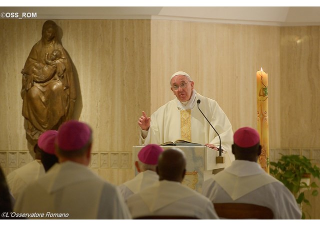‘Ngày nay, chúng ta đang thấy nhiều người giết hại các Kitô hữu, nhân danh Chúa, bởi họ nghĩ đó không phải là các tín hữu, là những kẻ tin. Đây là Thập giá Chúa Kitô: ‘Họ sẽ làm việc này bởi họ không biết Cha cũng không biết Ta.’ Chính Chúa Giêsu đã nói chuyện này đã xảy ra với Chúa, và sẽ xảy ra với anh em nữa, những sự bách hại, khốn cực – nhưng đừng để mình bị nên xấu: Thần Khí sẽ hướng dẫn và giúp chúng ta thông hiểu.’