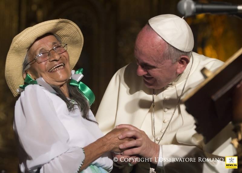Rồi làm sao quên được nụ cười, ánh mắt, bàn tay khi Đức Phanxicô gặp bà Imelda Caicedo Vega 85 tuổi trong buổi gặp với các Phong trào Xã hội Dân sự ngày 7 tháng 7 ở nhà thờ Phanxicô, Ecuador. Nhìn khuôn mặt của Đức Phanxicô trong lúc này, tôi nghĩ “công tu” của ngài thâm hậu thật. Tu đến mức này là siêu hiện thực. Một thực tế chỉ ở trong tầm tay của những người thật sự tận hiến đời mình cho tha nhân. Siêu hiện thực nhưng hiện thực vì nó đang ở trước mặt tôi. Đó là tình trạng thoát tục của người ở một cõi khác cõi ta bà này. Người trần mắt thịt như tôi, mỗi lần nhìn những người “thoát tục” thì không tránh được tâm trạng ghen, nhưng ghen cũng vô ích vì như thánh Âu Tinh đã nói, “tất cả là hồng phúc”. Ơn thì phải xin và phải cố gắng làm hết sức phần mình, chưa xin đủ lại không cố gắng hết sức mình thì chỉ là người dở hơi ưa ghen bậy.
