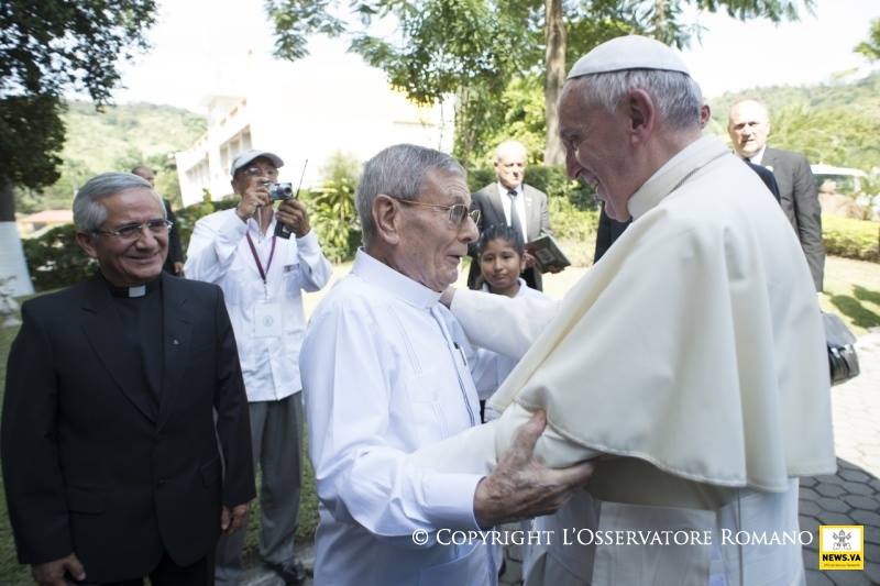 Tôi cũng xúc động mạnh khi ngay ngày thứ hai 16-7, mở đầu chuyến đi đến Ecuador và sau khi kết thúc Thánh lễ ở Đền thờ Lòng Thương Xót Chúa, Guayaquil, Đức Phanxicô đã đến thăm 5 phút ngắn ngủi cha giáo Cortez 91 tuổi, 5 phút trước khi ăn trưa ở trường Javier với các bạn hữu Dòng Tên. Năm phút của lòng biết ơn, của lòng tôn kính cựu giáo sư đã dạy các chủng sinh của mình hơn 30 năm về trước. Gần như tất cả các việc Đức Phanxicô làm là do trực giác bén nhạy của ngài, còn phần việc của tôi là làm sao thấy cho ra trong trực giác bén nhạy này bài học nào dành cho mình, hành vi nào tác động đến mình. 5 phút thăm ngắn ngủi đến mức cha Cortez đã nói, “tôi là người không ai biết ở đây, sao lại có vinh dự này?” Trong 30 năm không ai biết, nhưng có một người luôn nhớ trong lòng, cách đây ba mươi năm có người đã tận tụy dạy dỗ con cái mình. con cái mình nên người một phần là nhờ “người không ai biết này.”