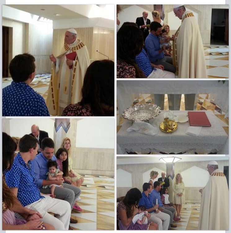 Lucas Schaerer và gia đình mình, những người bạn của giáo hoàng Phanxicô hồi ở Buenos Aires, đã chớp nhoáng đến Vatican, nơi giáo hoàng rửa tội cho hai cô con gái của họ, Simona và Charo.