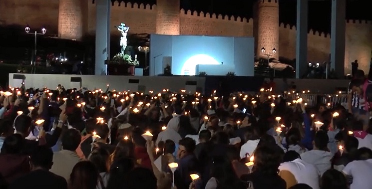 Vào khoảng 11 giờ tối thứ bảy 8 tháng 8. Một cơn gió thổi mạnh gần các tường thành Avila và các ngọn nến không thể cầm cự được quá vài giây. Bỗng nhiên, màn hình của hàng trăm điện thoại cầm tay sáng lên cả thành phố. Buổi canh thức dưới ánh nến trở thành buổi canh thức dưới ánh đèn lung linh “on line”.