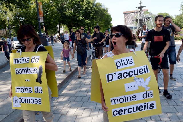 Chiều thứ bảy 5 tháng 9, hàng trăm người biểu tình ở các đường phố Montréal để yêu cầu chính quyền mở cửa đón thêm người tị nạn vào nước.