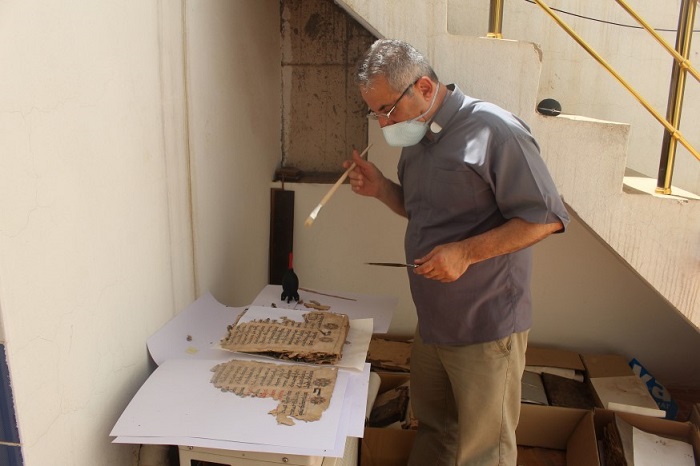 Trong một căn nhà kín đáo ở ngoại ô Erbil, thuộc vùng Kurdistan Irak, một linh mục Dòng Đa Minh điều khiển việc phục hồi các bản thảo có từ hàng trăm năm.