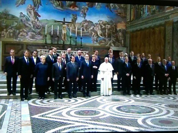 Đức Phanxicô và 27 nguyên thủ quốc gia Âu châu ở Nhà Nguyện Sixtine, 24 tháng 3-2017
