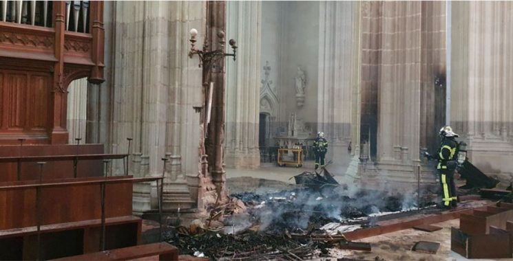Chỉ vài giờ sau vụ cháy gây thiệt hại nặng ở nhà thờ Loire-Atlantique ngày 18 tháng 7, một thiện nguyện viên nghi can trong vụ cháy nhà thờ chính tòa giáo phận Nantes, Pháp bị tạm giam. Tuy nhiên Công tố viện kêu gọi không nên đưa ra mọi bình luận vội vã.